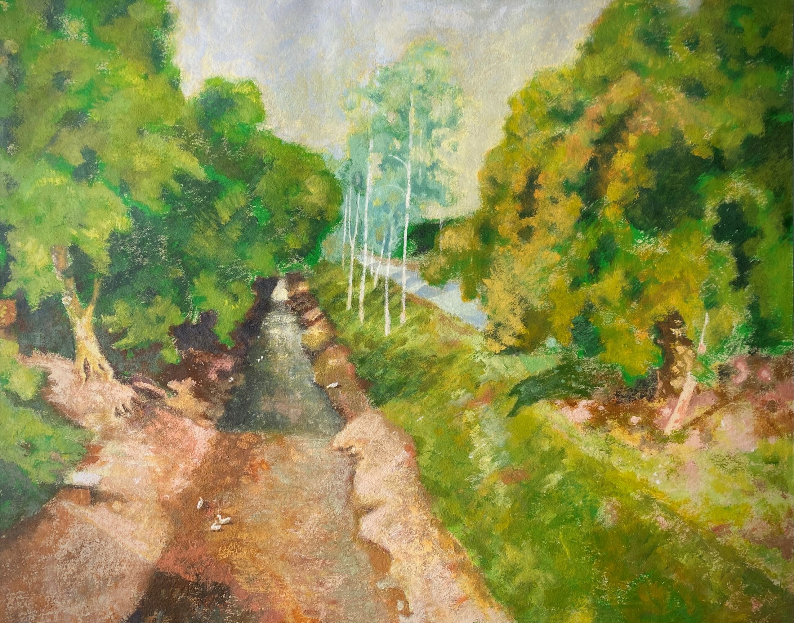 Cette œuvre présente une composition centrée, dans un carré, avec à gauche, la moitié supérieure du corps d’une jeune femme vue de dos, du sommet de la tête jusqu’au bassin, et à droite, la partie inférieure du même corps, du bassin aux pieds. Les deux segments sont peints dans une même tonalité, avec une texture pâteuse et une application vigoureuse en alla prima. L’œuvre repose sur sept planches de bois brut, assemblées verticalement et fixées par trois traverses à l’arrière.