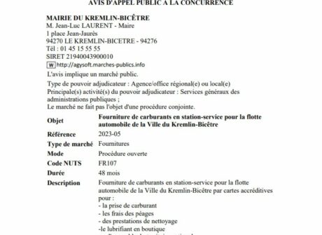 Objet : Fourniture de carburants en station-service pour la flotte automobile de la Ville du Kremlin-Bicêtre