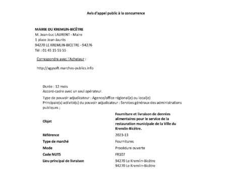 Objet : Fourniture et livraison de denrées alimentaires pour le service de la restauration municipale de la Ville du Kremlin-Bicêtre.