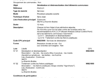 Objet du marché : Dératisation et désinsectisation des bâtiments communaux