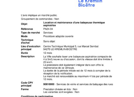 Objet : Location et maintenance d’une balayeuse thermique aspiratrice.