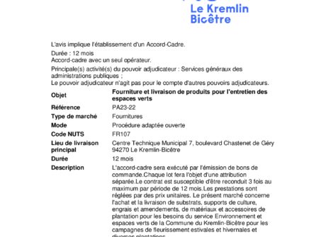 Objet : Fourniture et livraison de produits pour l’entretien des espaces verts
