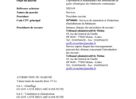 Objet du marché : Exploitation et maintenance des installations de génie climatiques des bâtiments communaux.