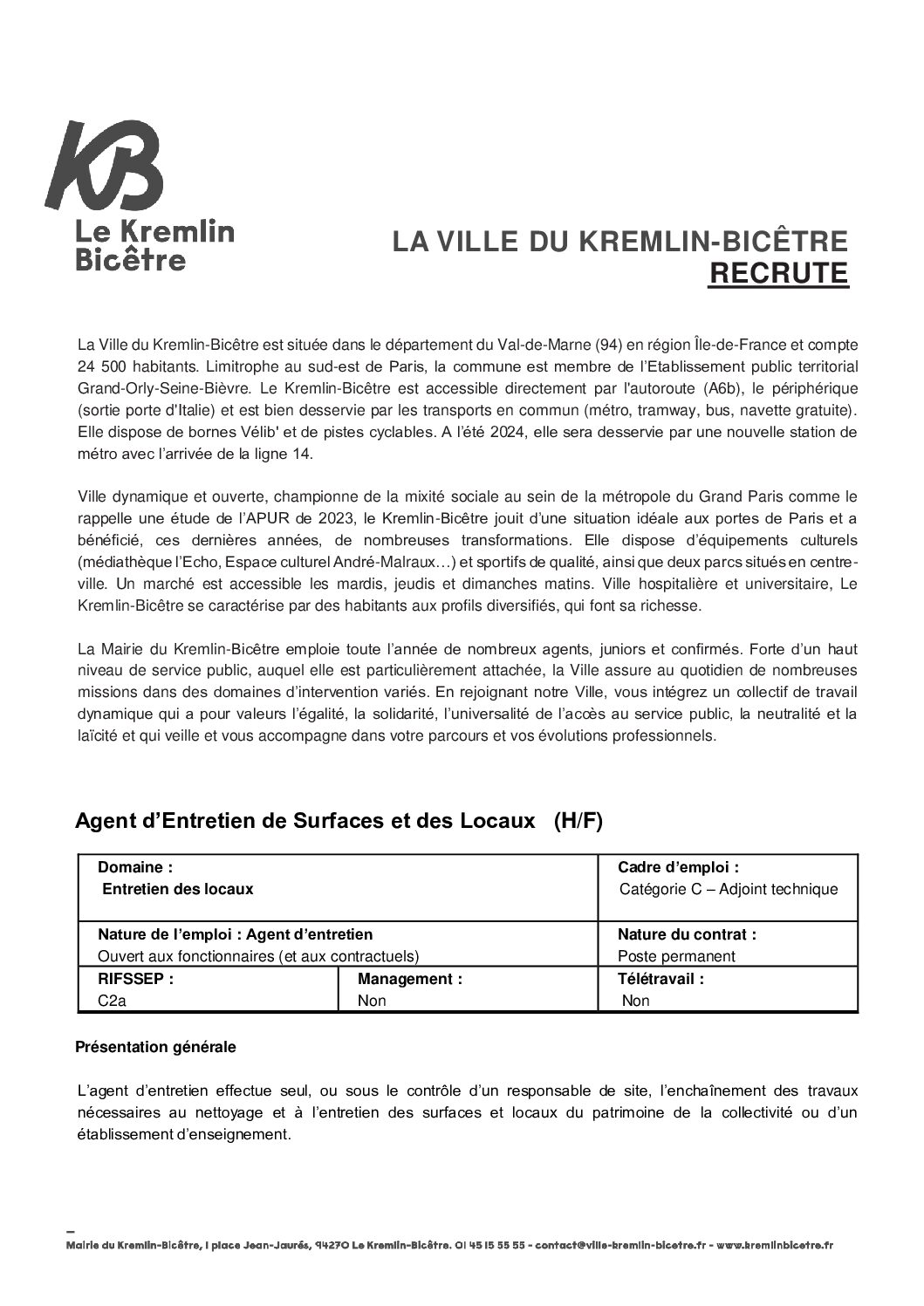 • Agent d'entretien de surface et des locaux H/F PDF - 277,9 ko