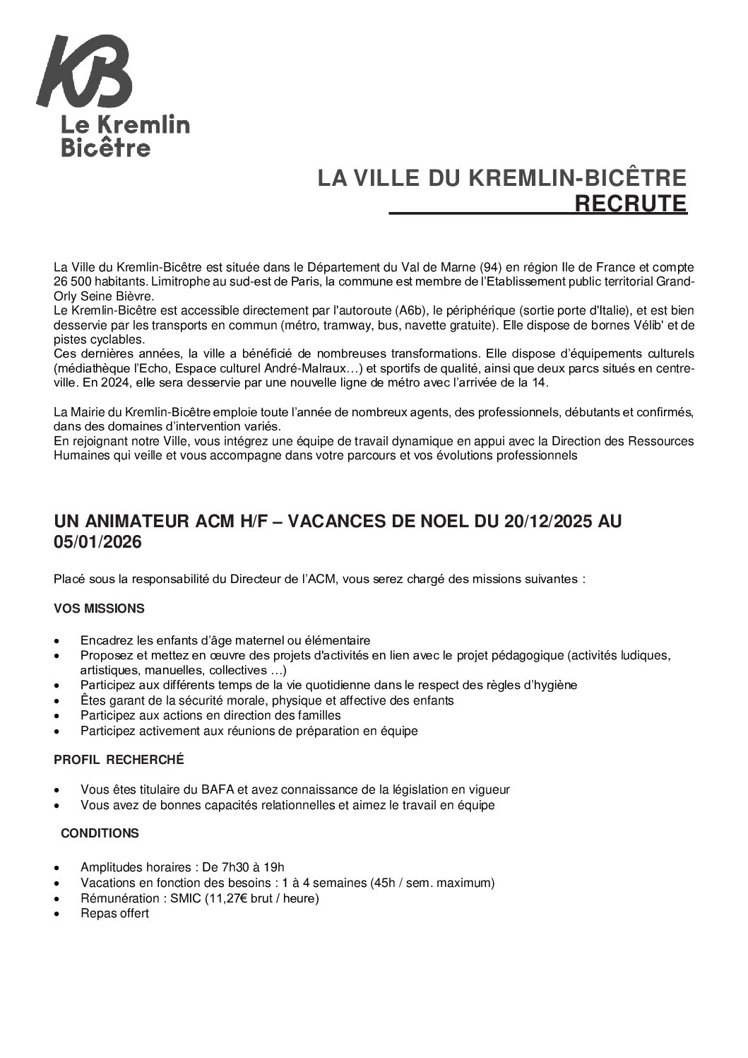 • ANIMATEUR ACM H/F - VACANCES DE NOËL DU 20/12/2025 AU 05/01/2026 PDF - 420,0 ko
