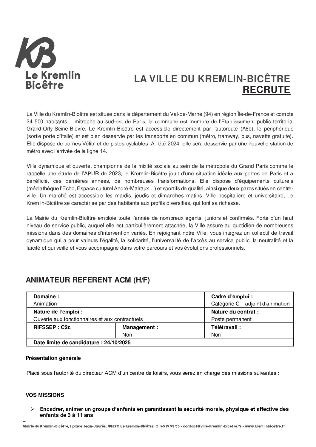 Catégorie C - cadre d'emploi des adjoints d'animation territoriaux