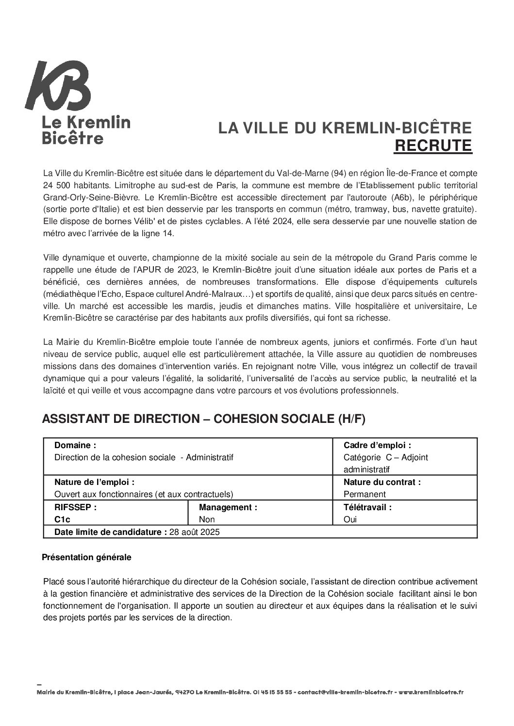 • Assistant de Direction - Cohésion sociale H/F PDF - 610,6 ko