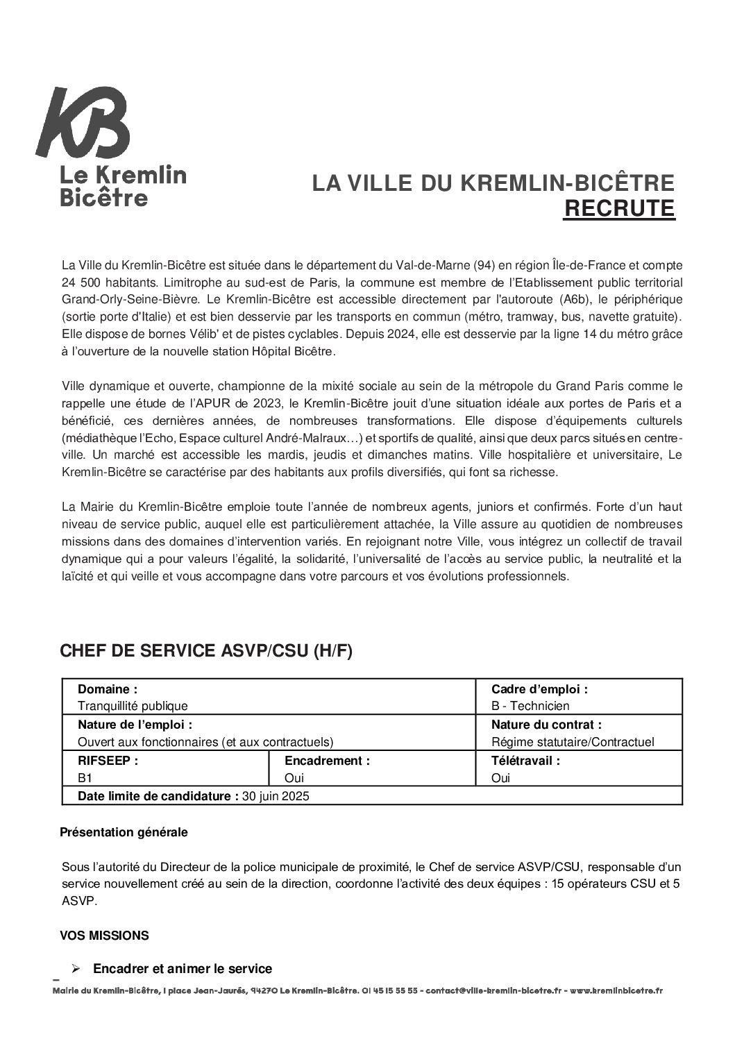 Chef de service ASVP/CSU H/F