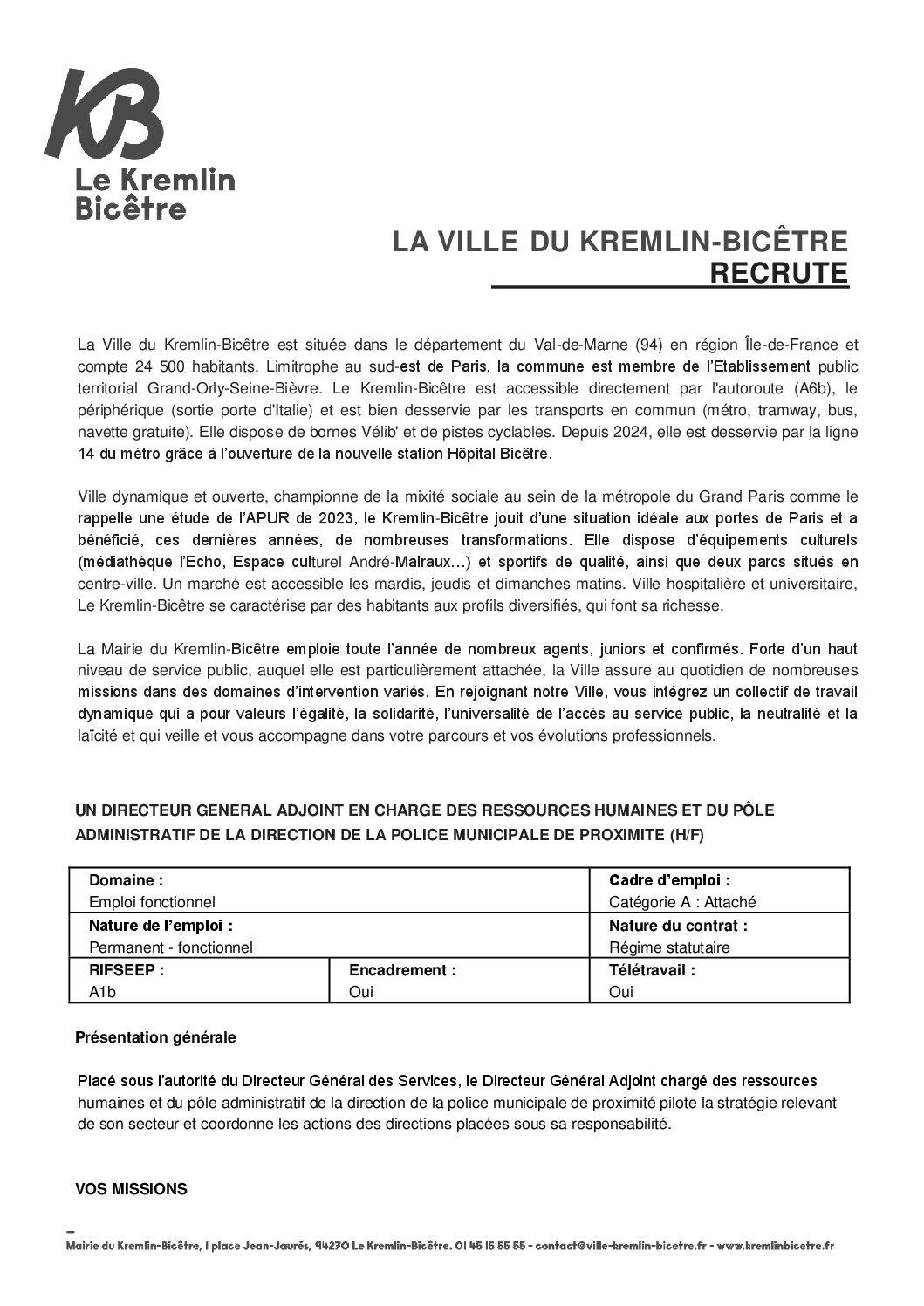 • DIRECTEUR GÉNÉRAL ADJOINT EN CHARGE DES RESSOURCES HUMAINES ET DU POLE ADMINISTRATIF DE LA DIRECTION DE LA POLICE MUNICIPALE DE PROXIMITE H/F PDF - 260,4 ko