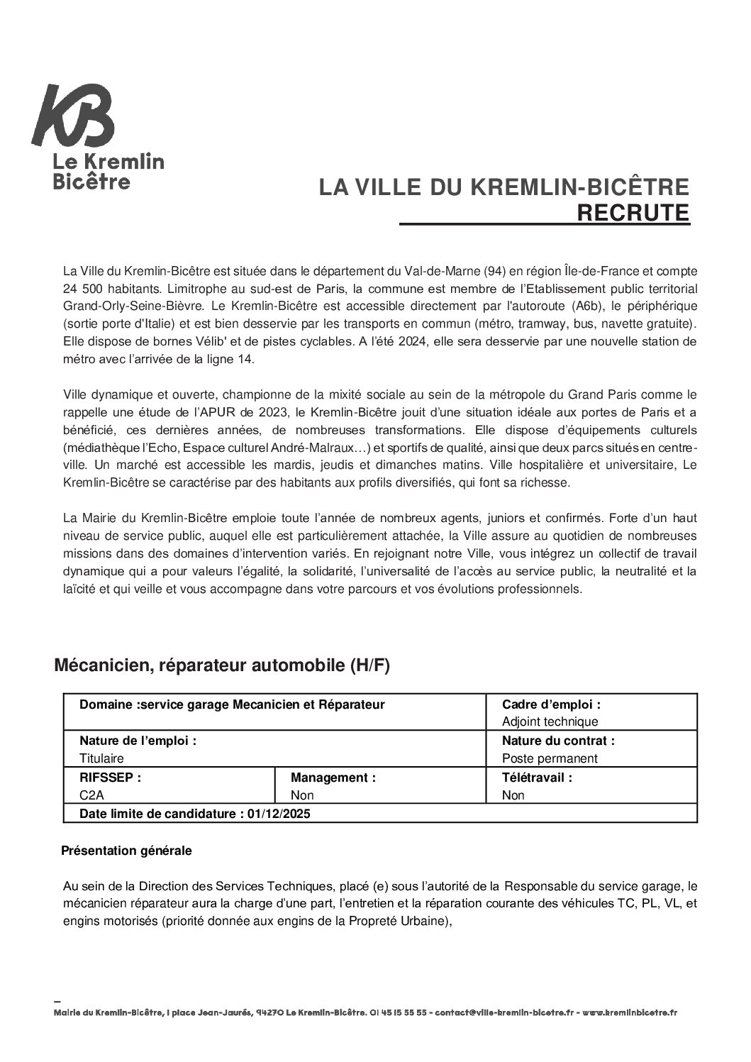 MECANICIEN, REPARATEUR AUTOMOBILE H/F