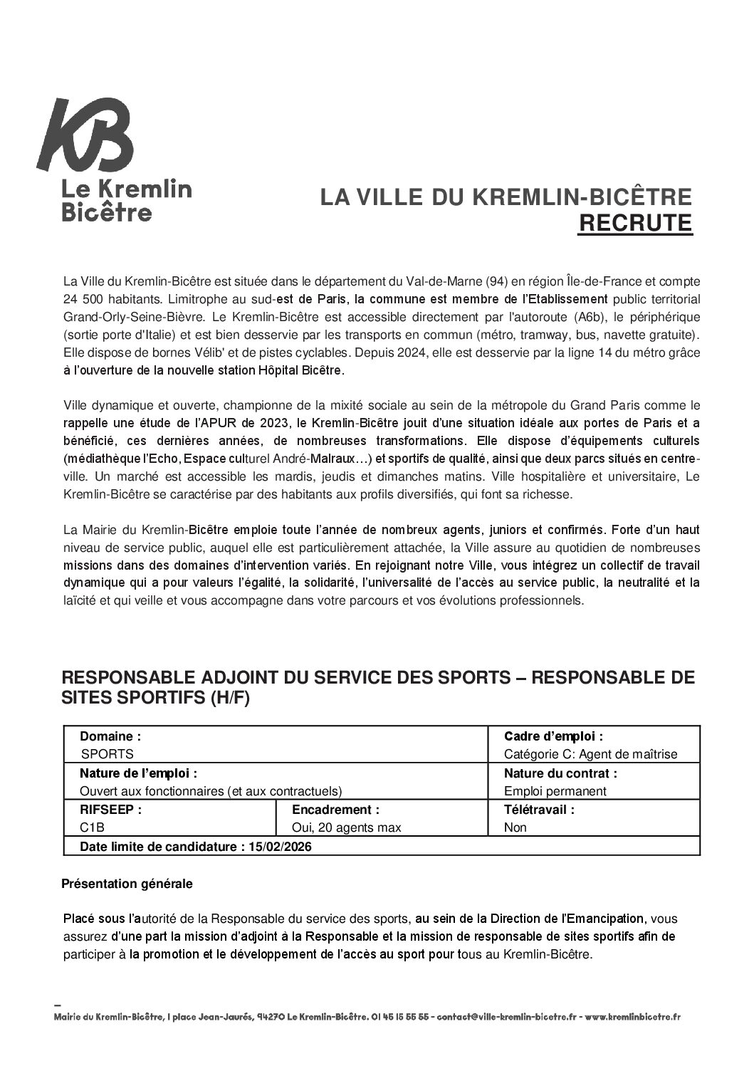 • Responsable adjoint du service des sports - Responsable de sites sportifs H/F PDF - 180,1 ko