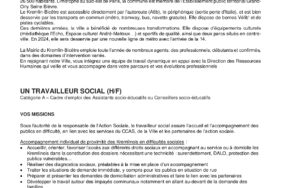 Catégorie A – Cadre d’emploi des Assistants socio-éducatifs ou Conseillers socio-éducatifs